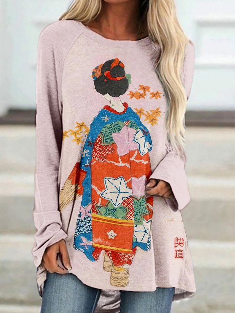 Maple Leaf & Japanese Woman Art A Line T Shirt