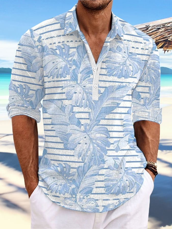 Men's Casual Hawaiian Print Stand Collar Shirt