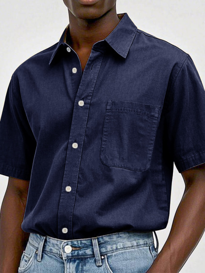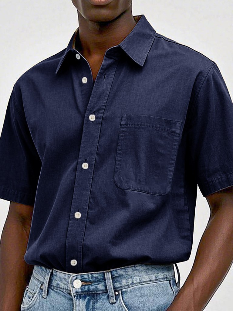 Men's Fashion Casual Retro Pure Cotton Lapel T-shirt