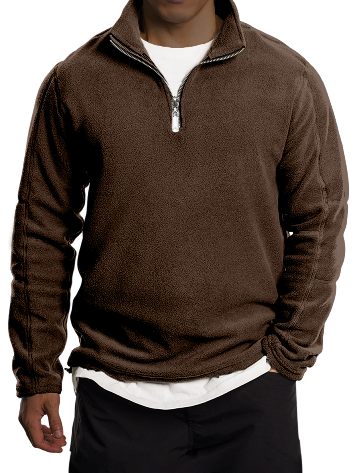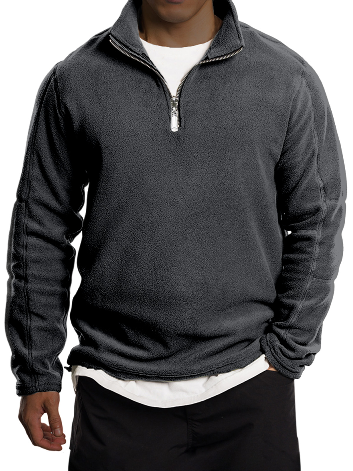 Men's Solid Color Polar Fleece Half-zip Long Sleeve Sweatshirt