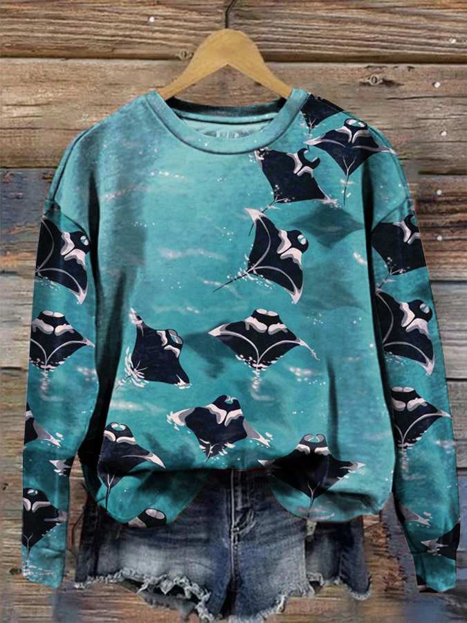 Ocean Manta Ray Loose Crew Neck Sweatshirt