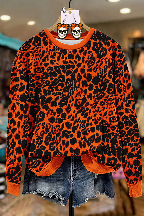 Orange Leopard Print Sweatshirt