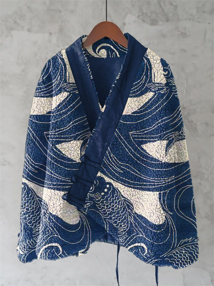 Vintage Fish Japanese Art Wool Kimono Cardigan