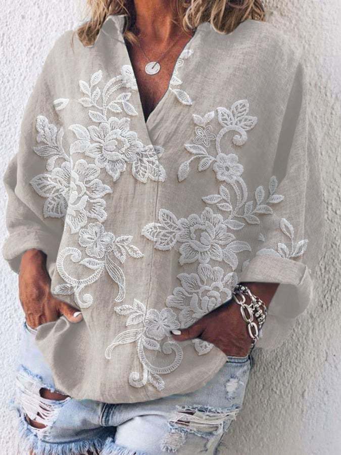 Women's Casual Floral Embroidery Print Shirt