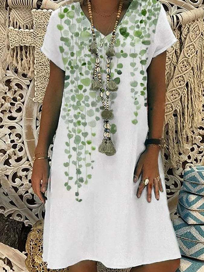 Women's Casual Loose V- Neck Short Sleeve Dress