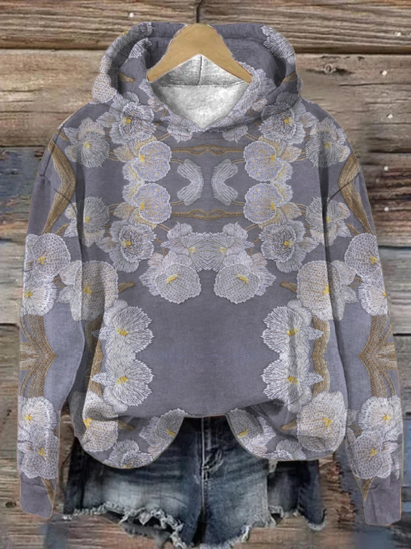 Women's Female Japanese Yarn Art Flower And Butterfly Color Prints Hoodie