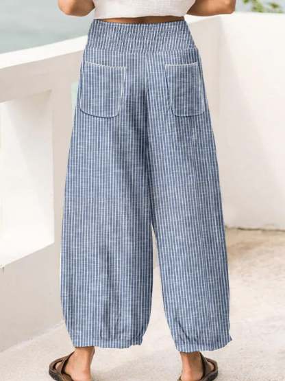 Women's Retro Striped Design Lace-Up Elastic Waist Loose Casual Pants