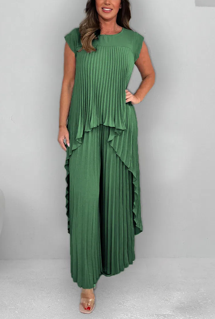 Women's Round Neck Splicing Pleated Irregular Casual Suit