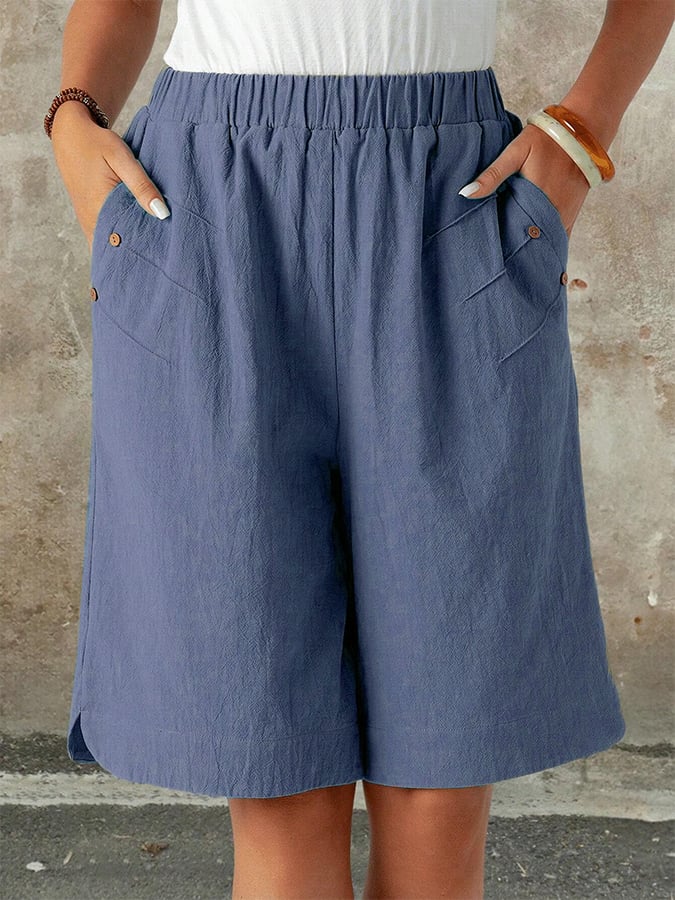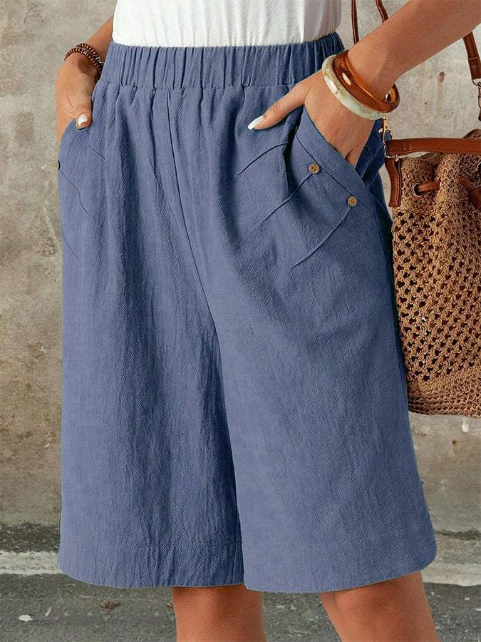 Women's Solid Color Buttoned Loose Casual Shorts (With Pockets)