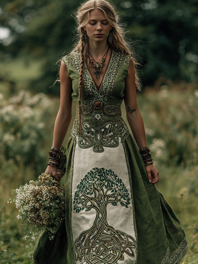 Women's Viking Life Of Tree Art V-neck Sleeveless Maxi Dress
