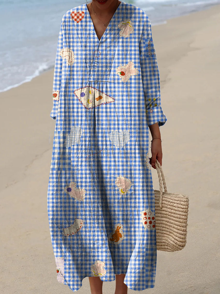 Women's Vintage Plaid Pattern Art Print Cotton Dress