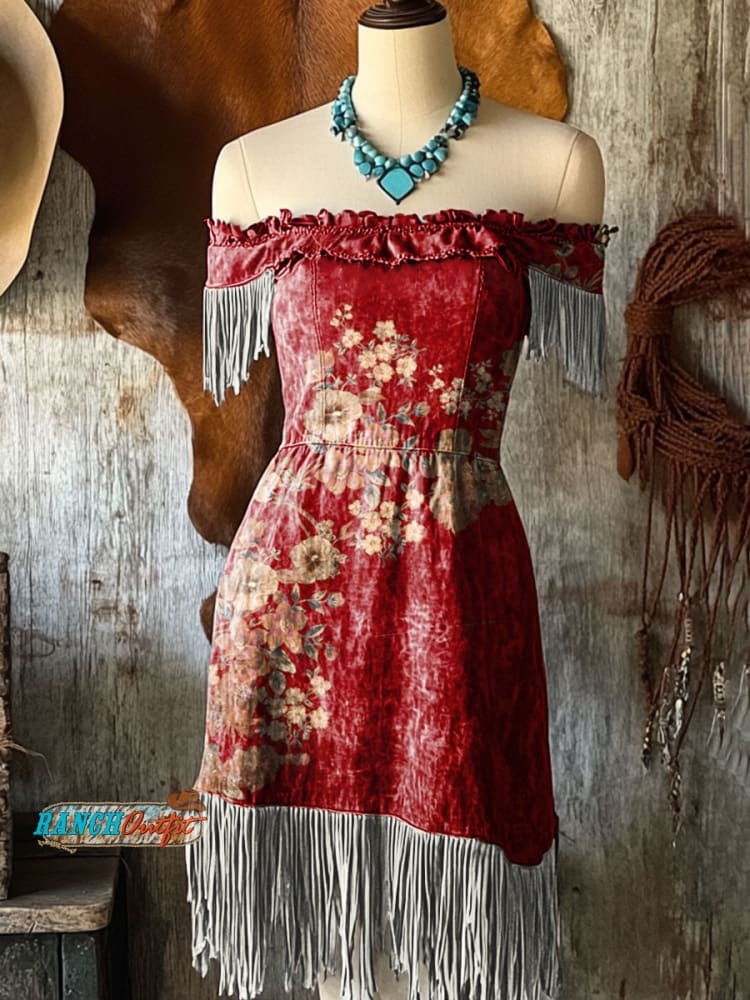 Women's Western Art Print Tassel Cotton Dress