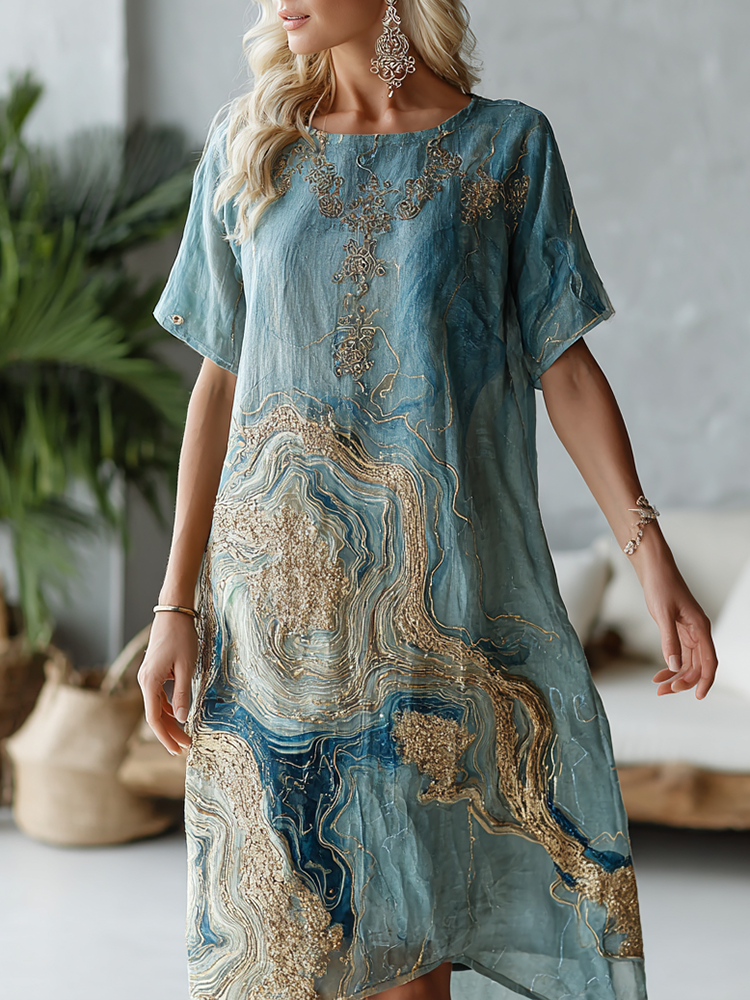 Vintage Marble Texture Collection Retro Bohemia Gradient Gilded Pattern Linen Dress