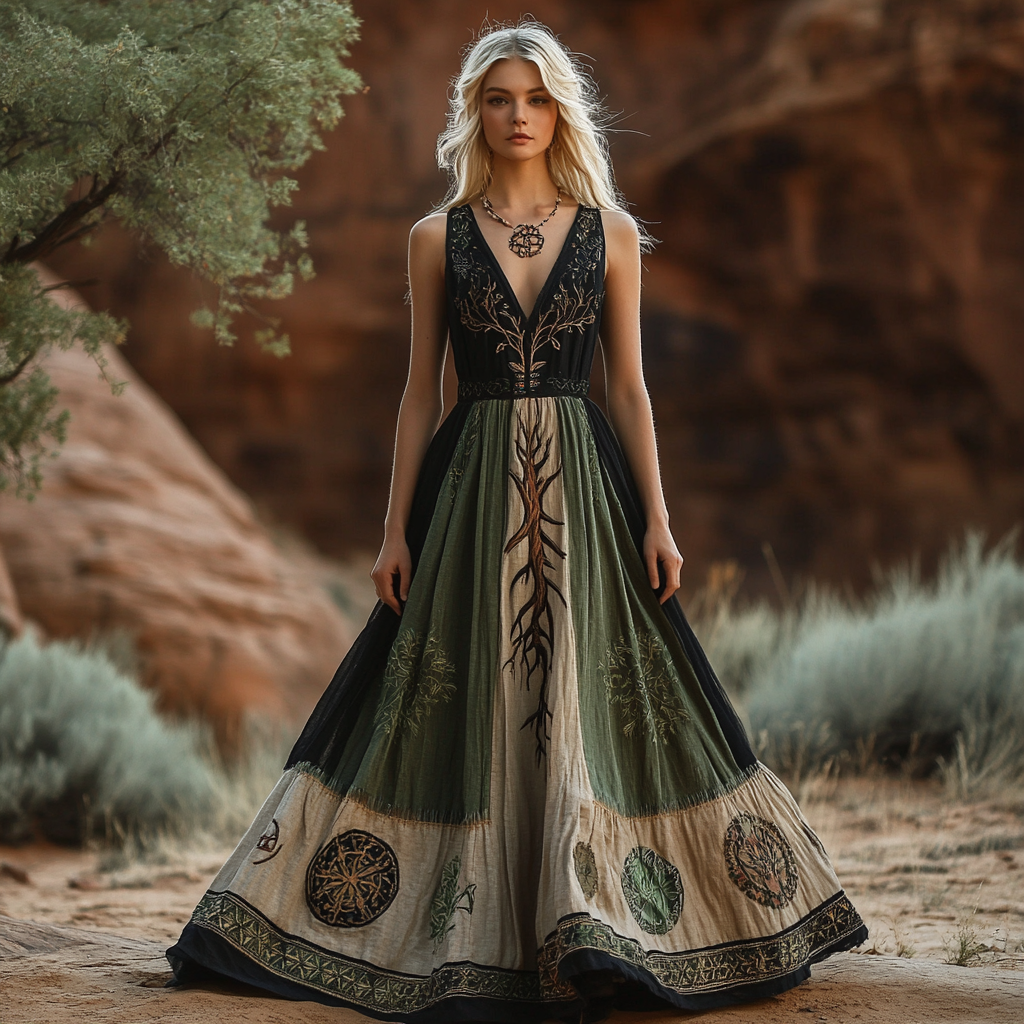 Viking Tree Of Life Patchwork Suspender Maxi Dress