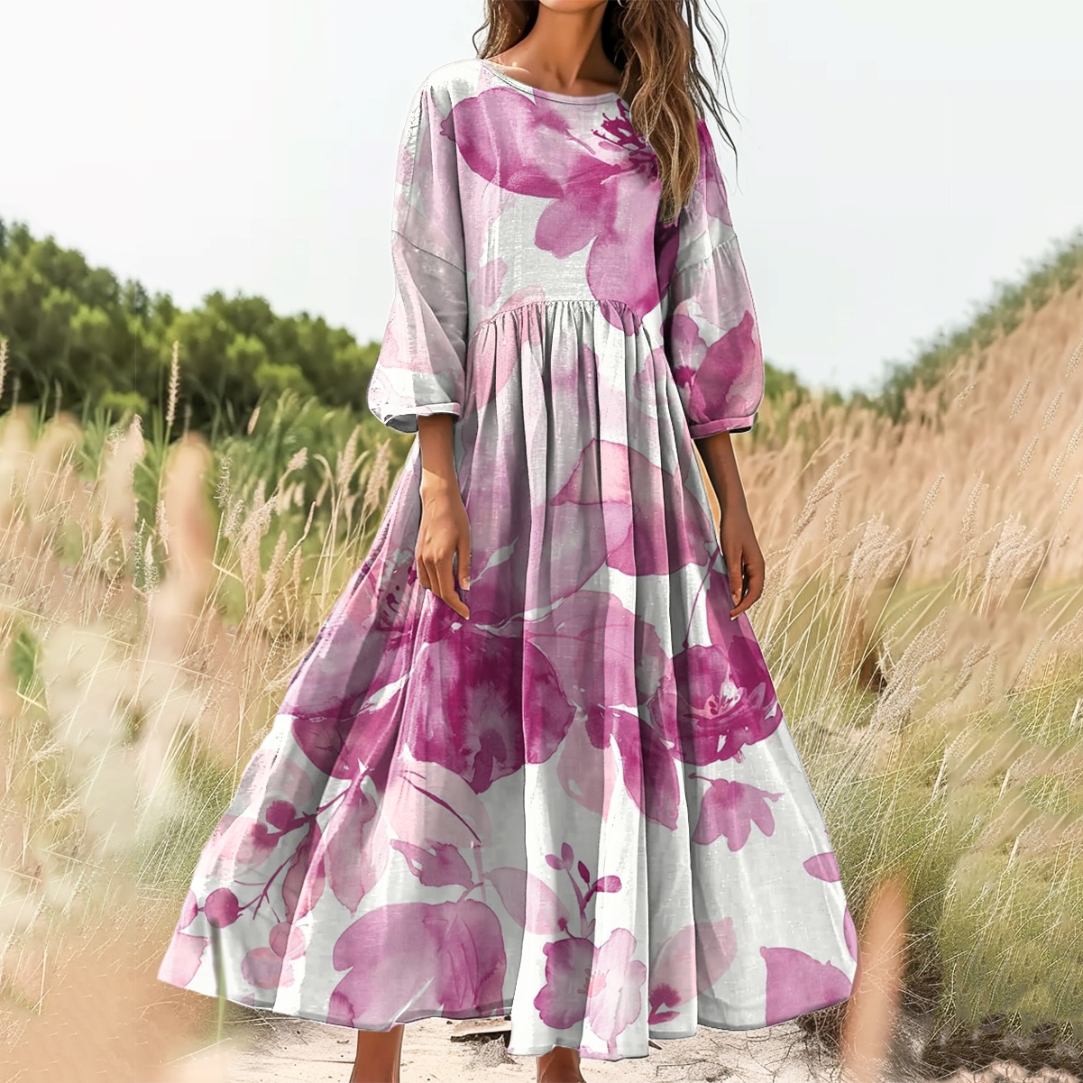 Women's Gradient Floral Art Print Flowy Cotton Crew Neck Dress