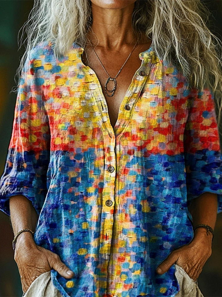 Women's Colorful Gradient Art Print Casual Cotton Linen Shirt