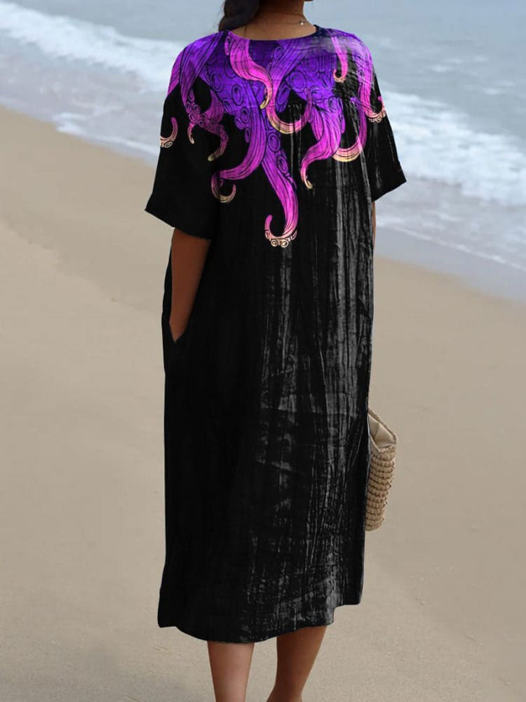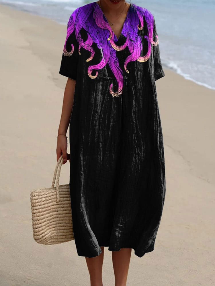 Octopus Tentacles Art Printed Women's Flowy Dress