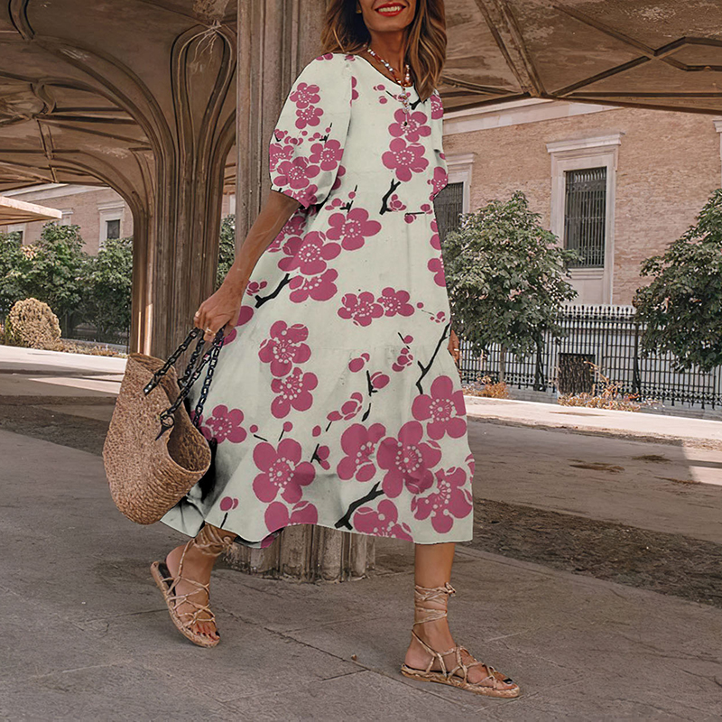 Vintage Floral Japanese Art And Spring Midi Dress
