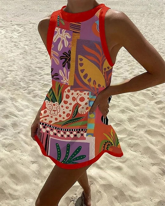 Beach Resort Printed Mini Dress