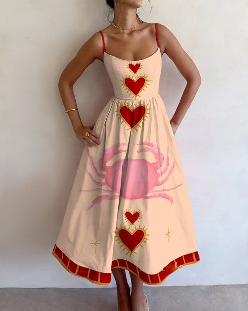 Crab Love Printed Sleeveless Mini Dress