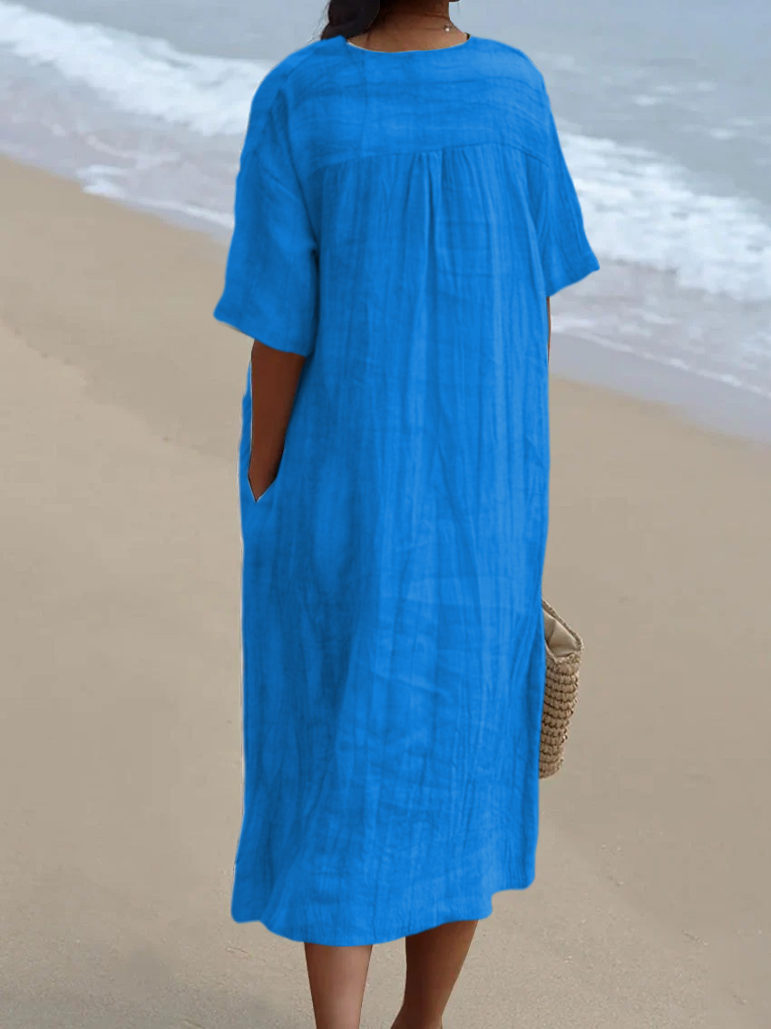 Women's Colorful Geometric Star Element Print Pocket Linen Dress