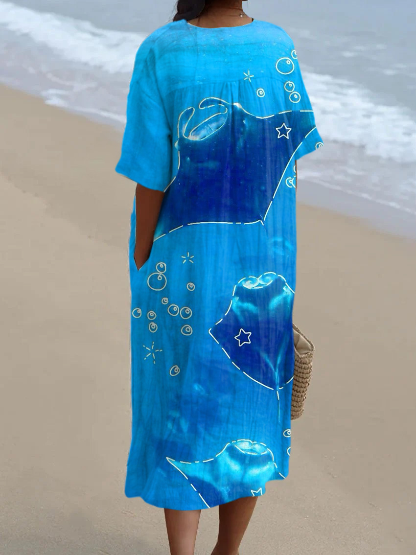 Ocean Manta Ray Casual V-Neck Midi Dress