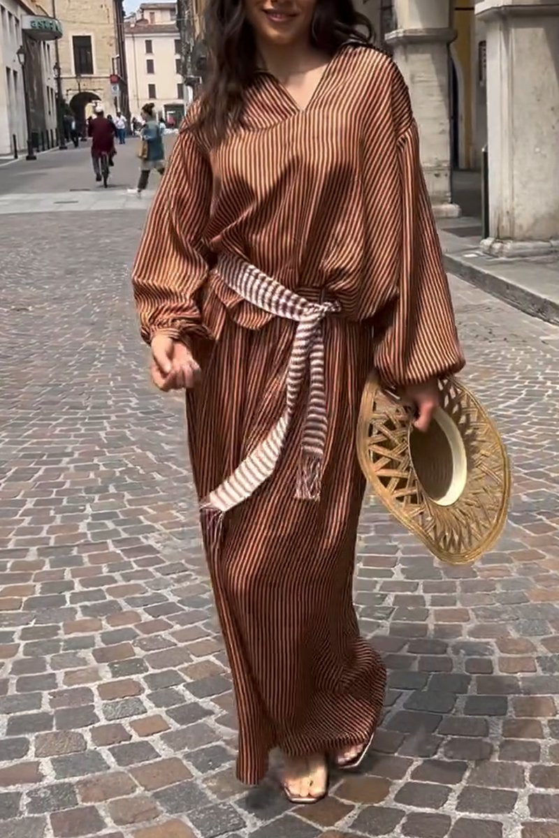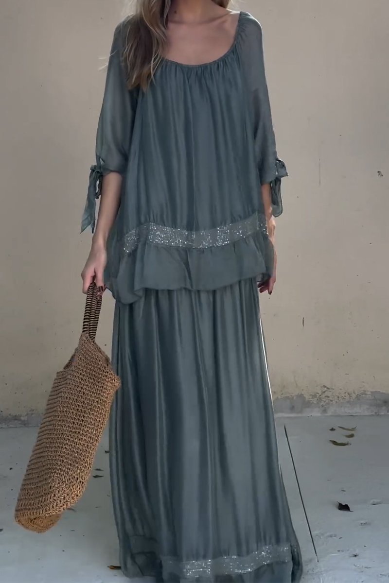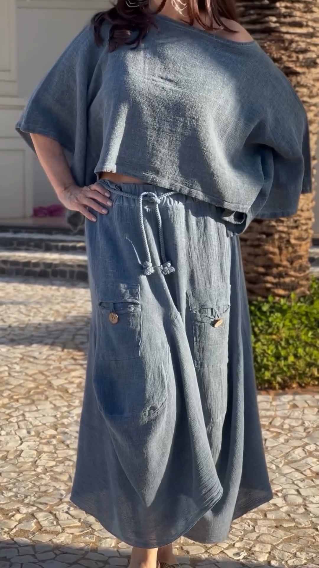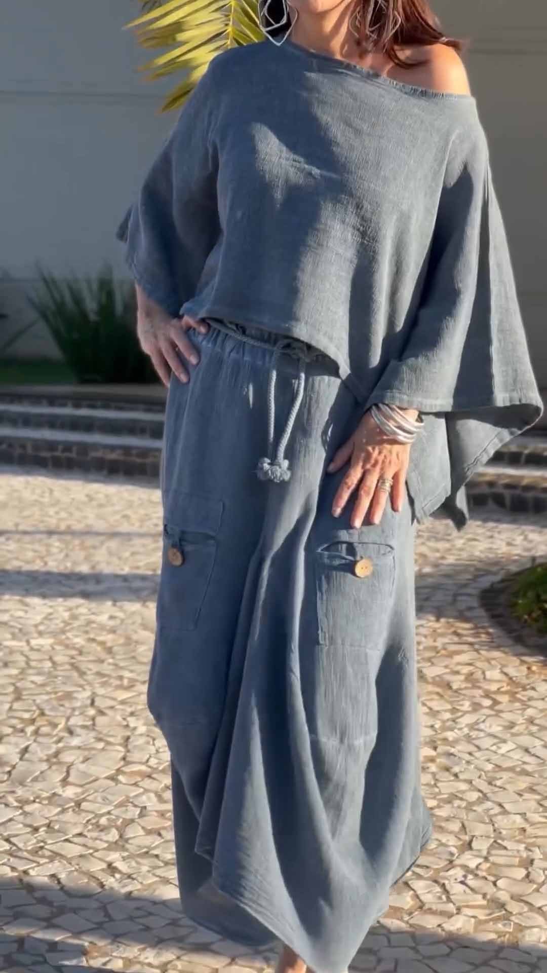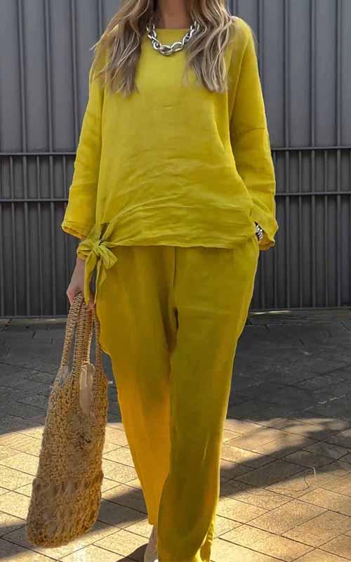 Women's Round Neck Long Cotton and Linen Two Piece Suit