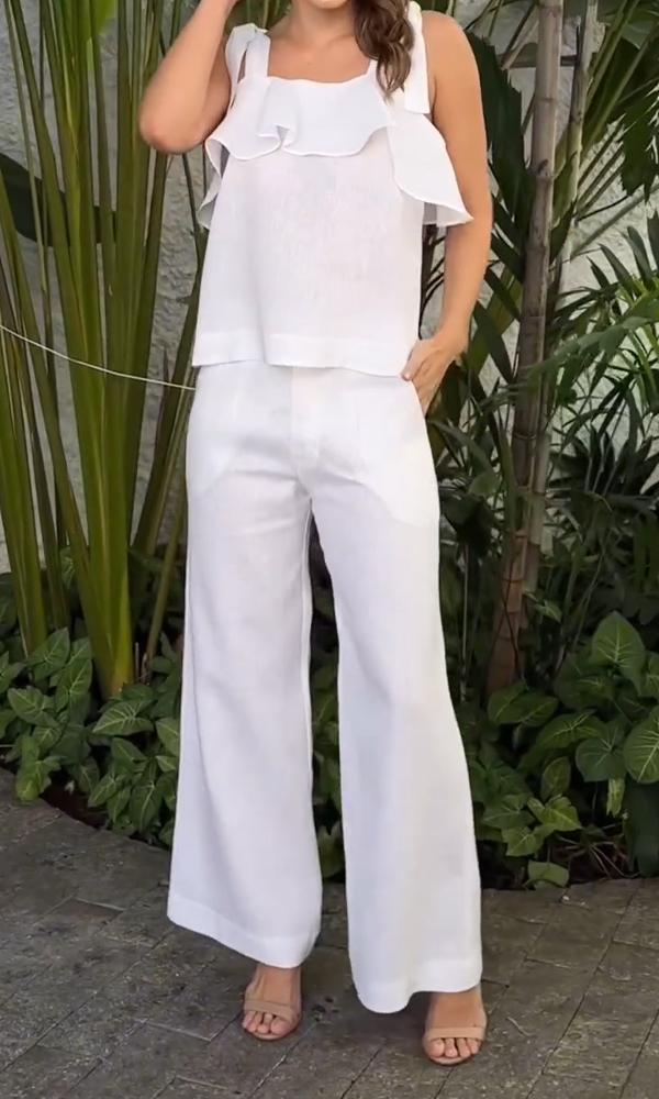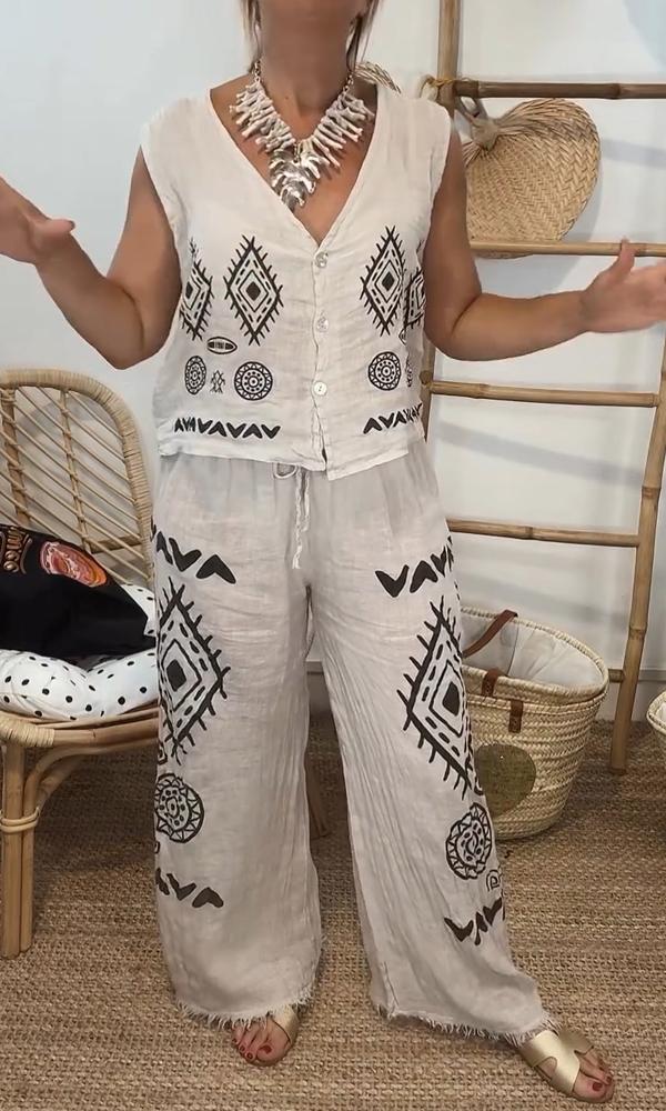Women's Comfortable Two-Piece Cotton Linen Galter Top And Trousers