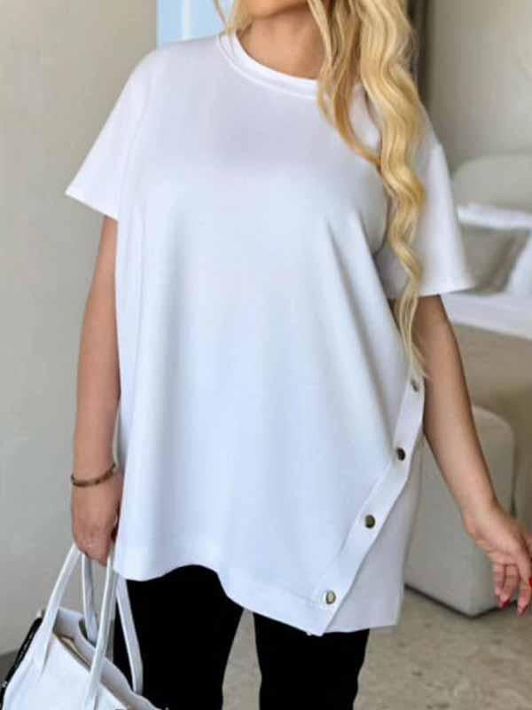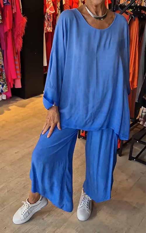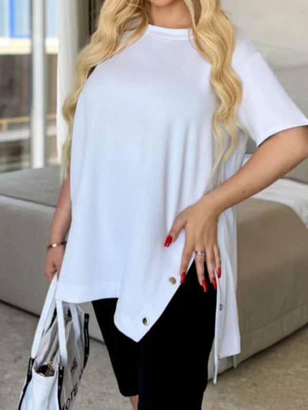 Women's Round Neck Solid Color Loose Two-piece Suit