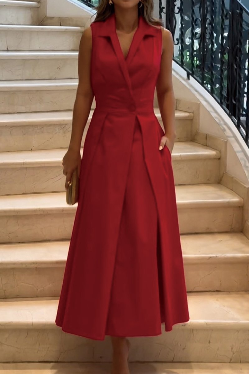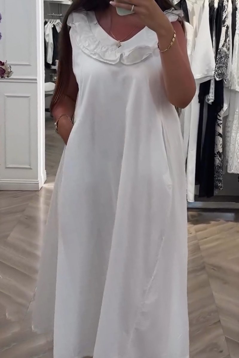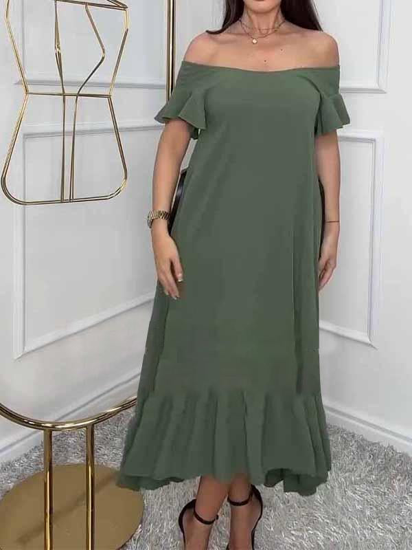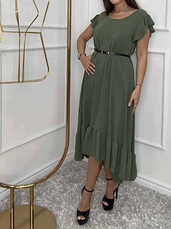 Women's Round Neck Cap Sleeve Solid Color Dress