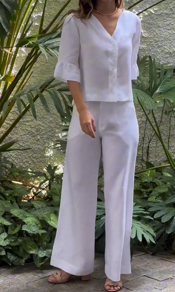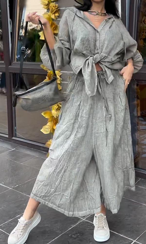 Women's Comfortable Two-Piece Cotton Linen Blouse And Trousers
