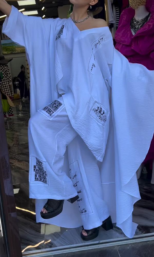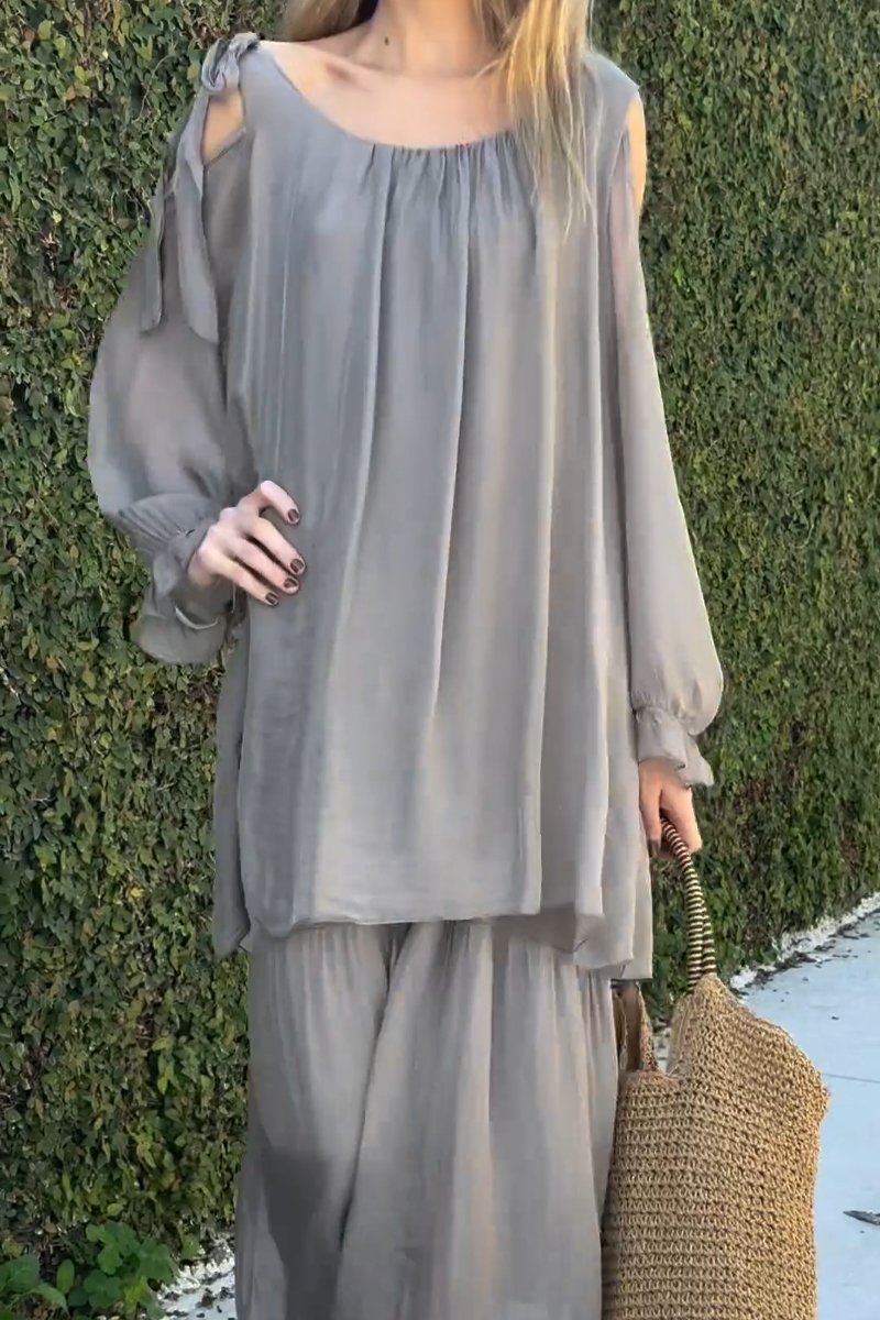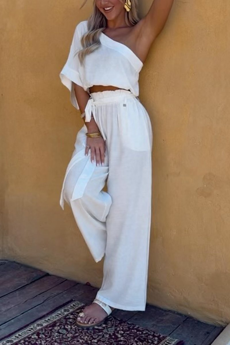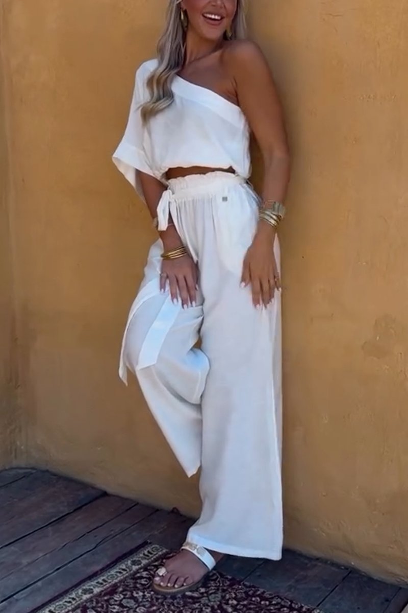 Women's One-shoulder Solid Color Loose Two-piece Suit