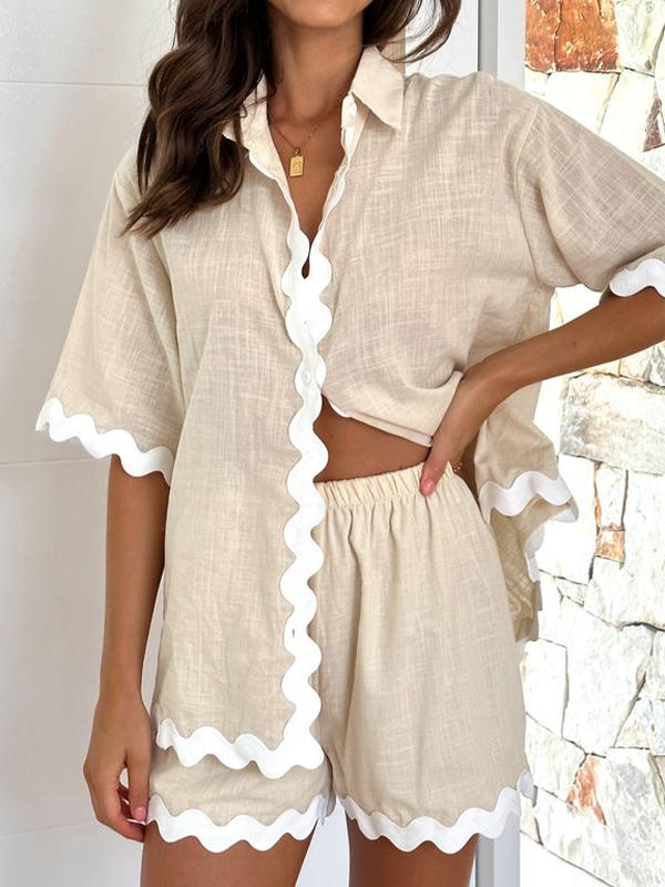 Women's Lapel Water Ripple Edge Design Casual Suit
