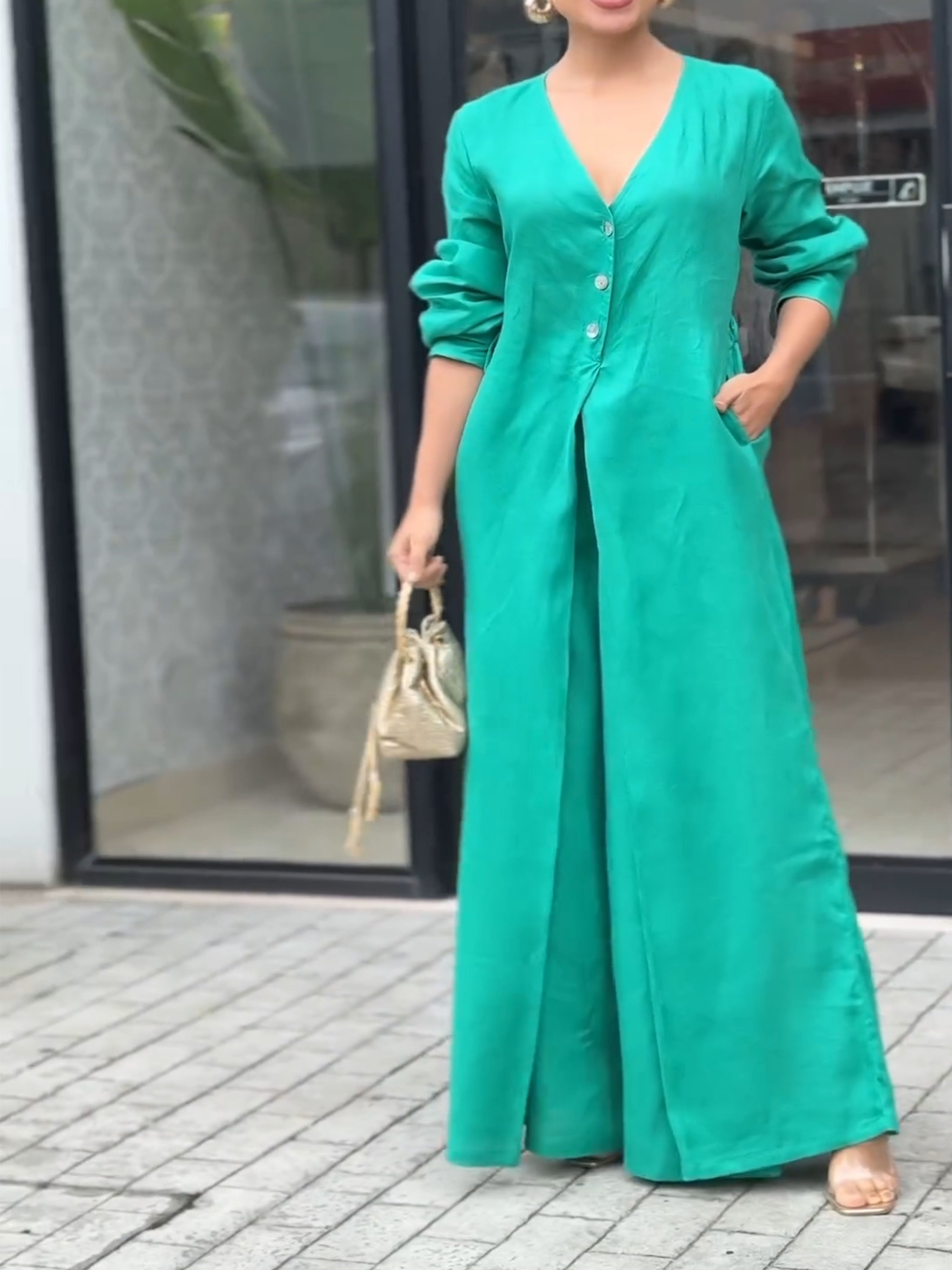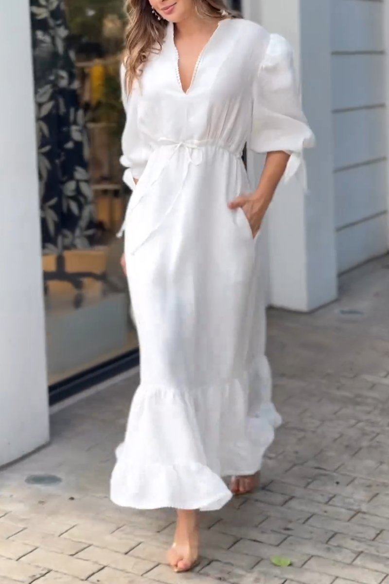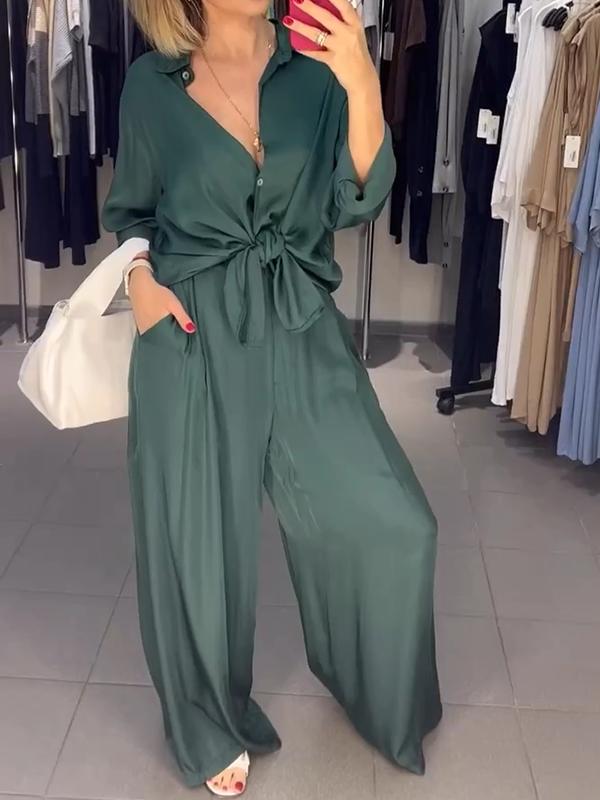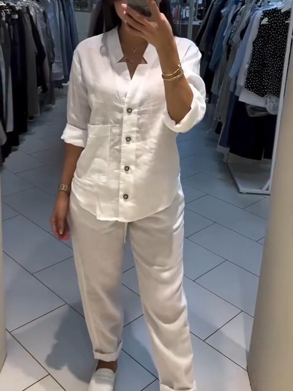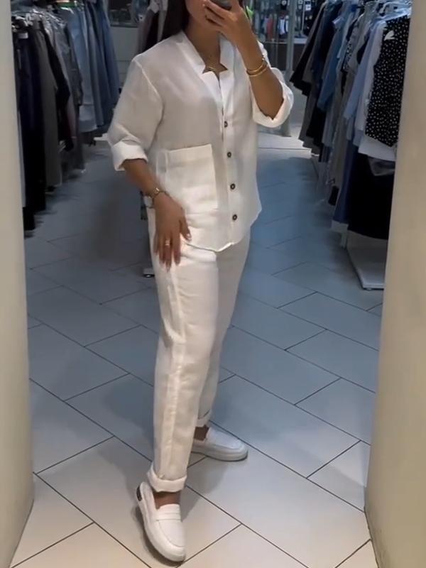 Women Casual Plain Cotton and Linen Two-pieces Set
