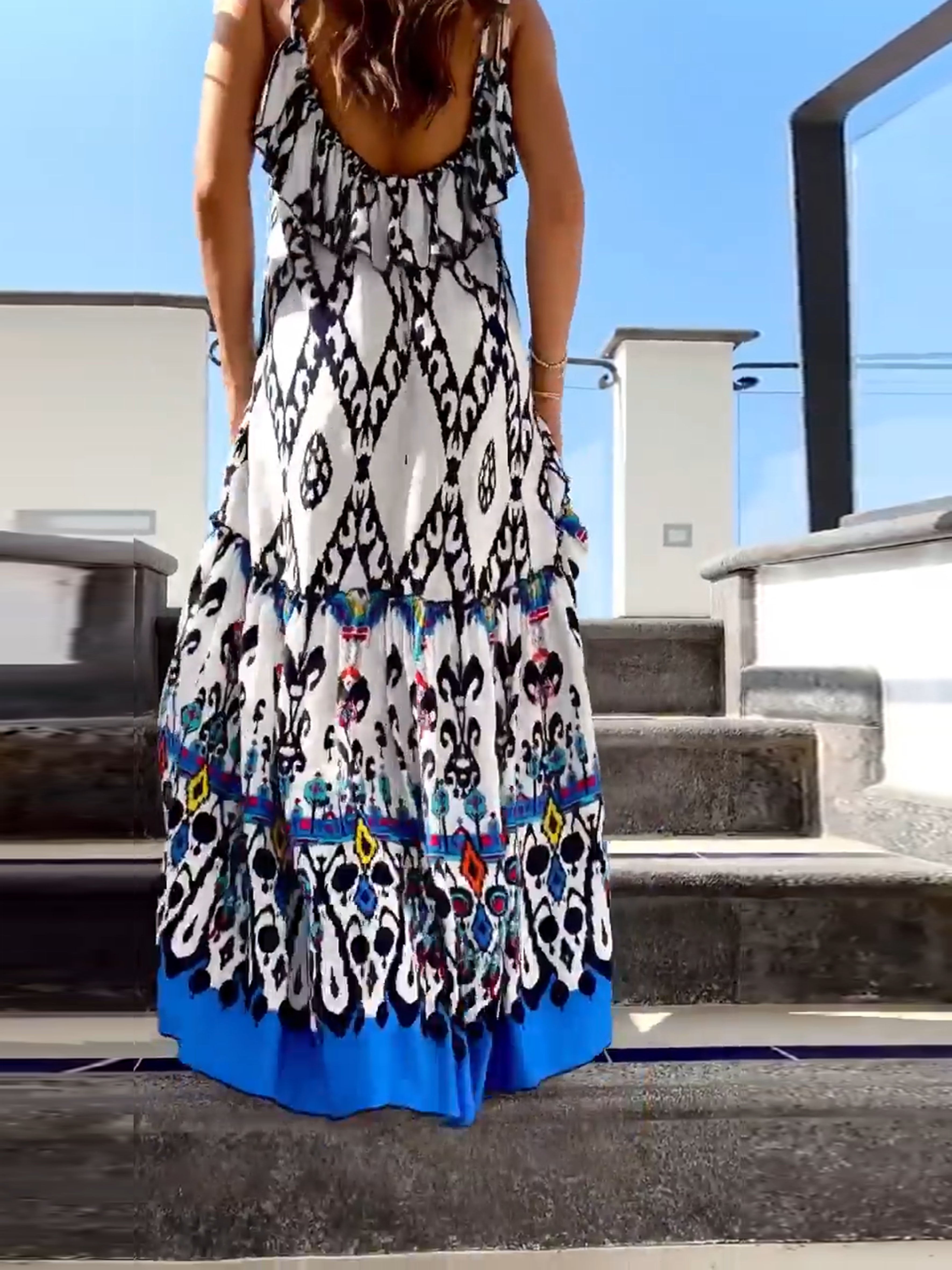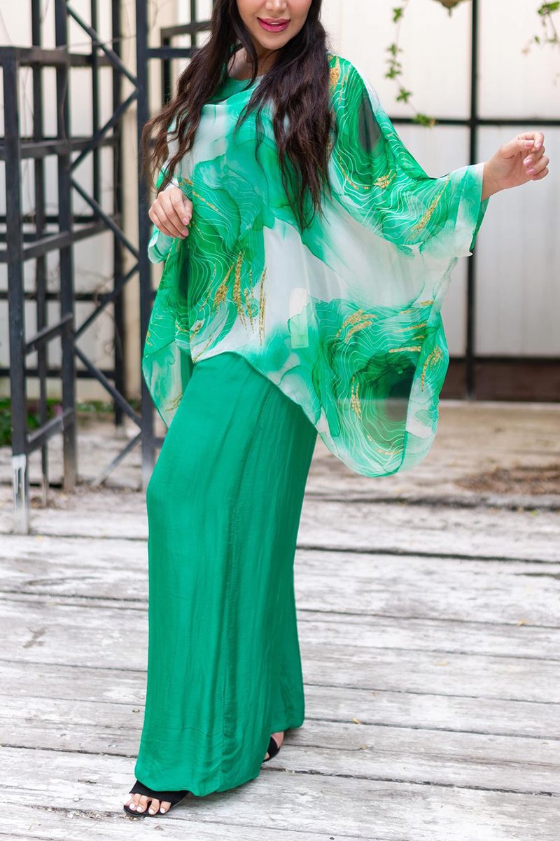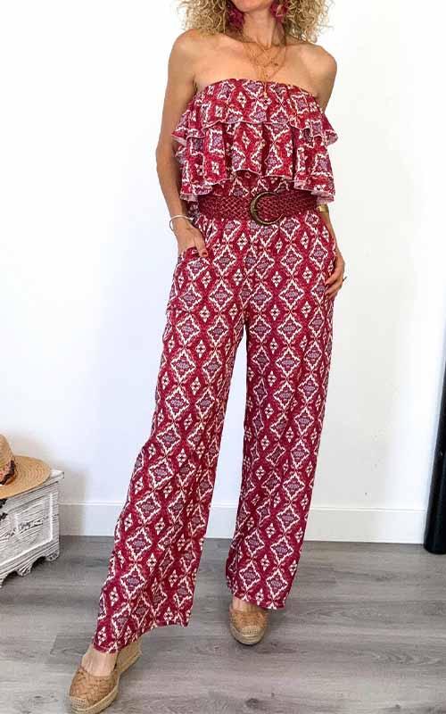 Women's casual printed off-shoulder crop top and wide-leg pants two-piece set
