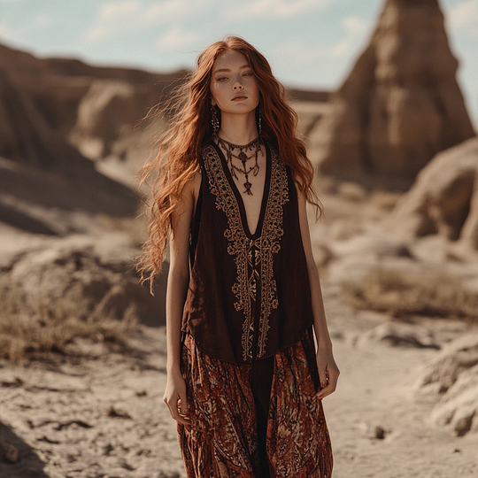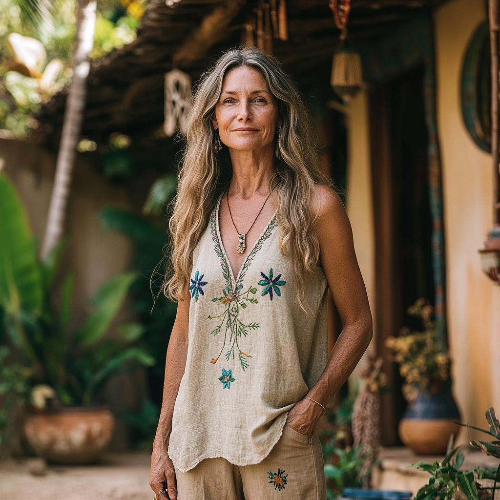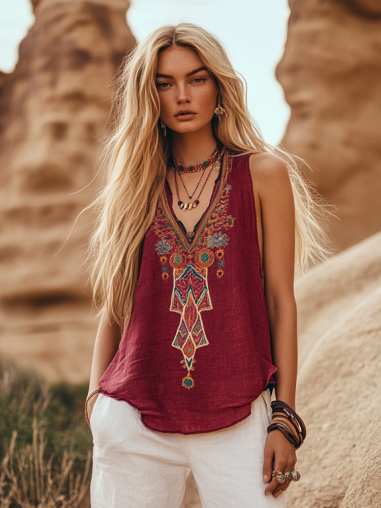 Women's Vintage Bohemia Ethnic Linen V-neek Sleeveless Top