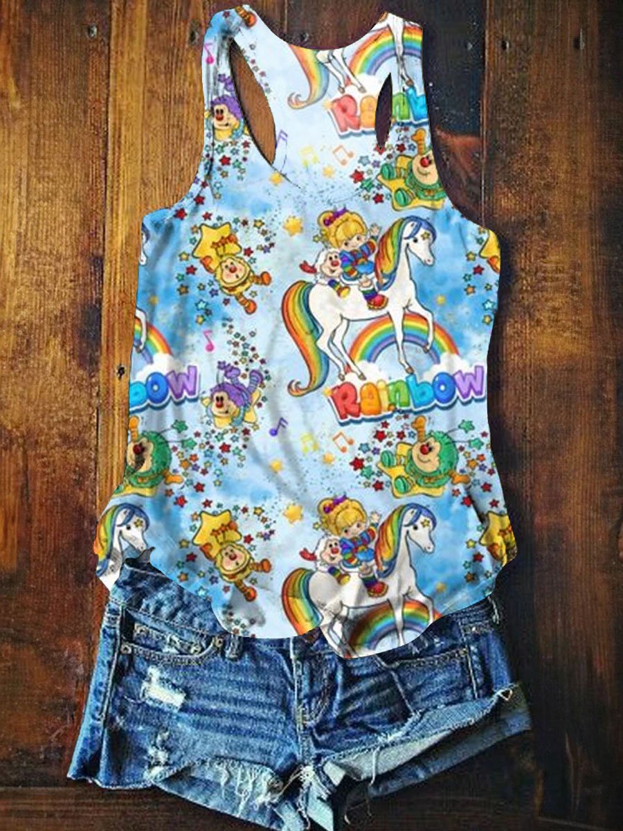 Rainbow Brite Print Casual Tank Top
