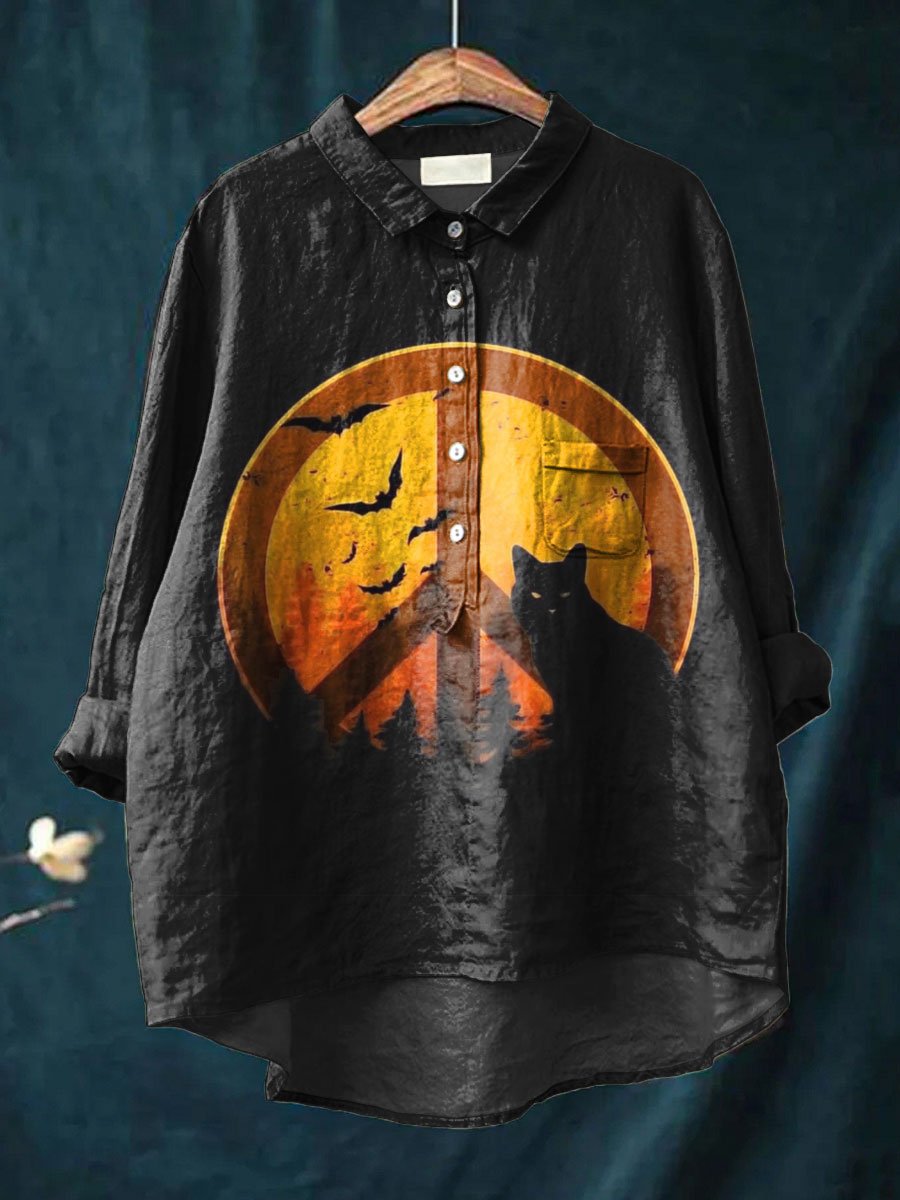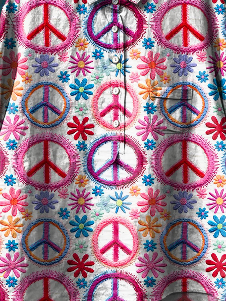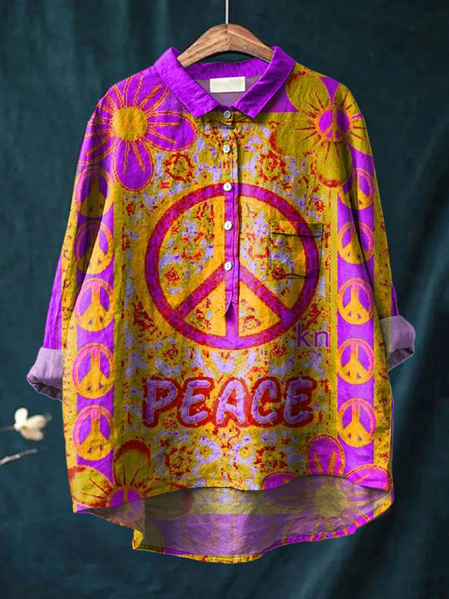 Women's Peace And Love Art Pattern Print Casual Cotton And Linen Shirt