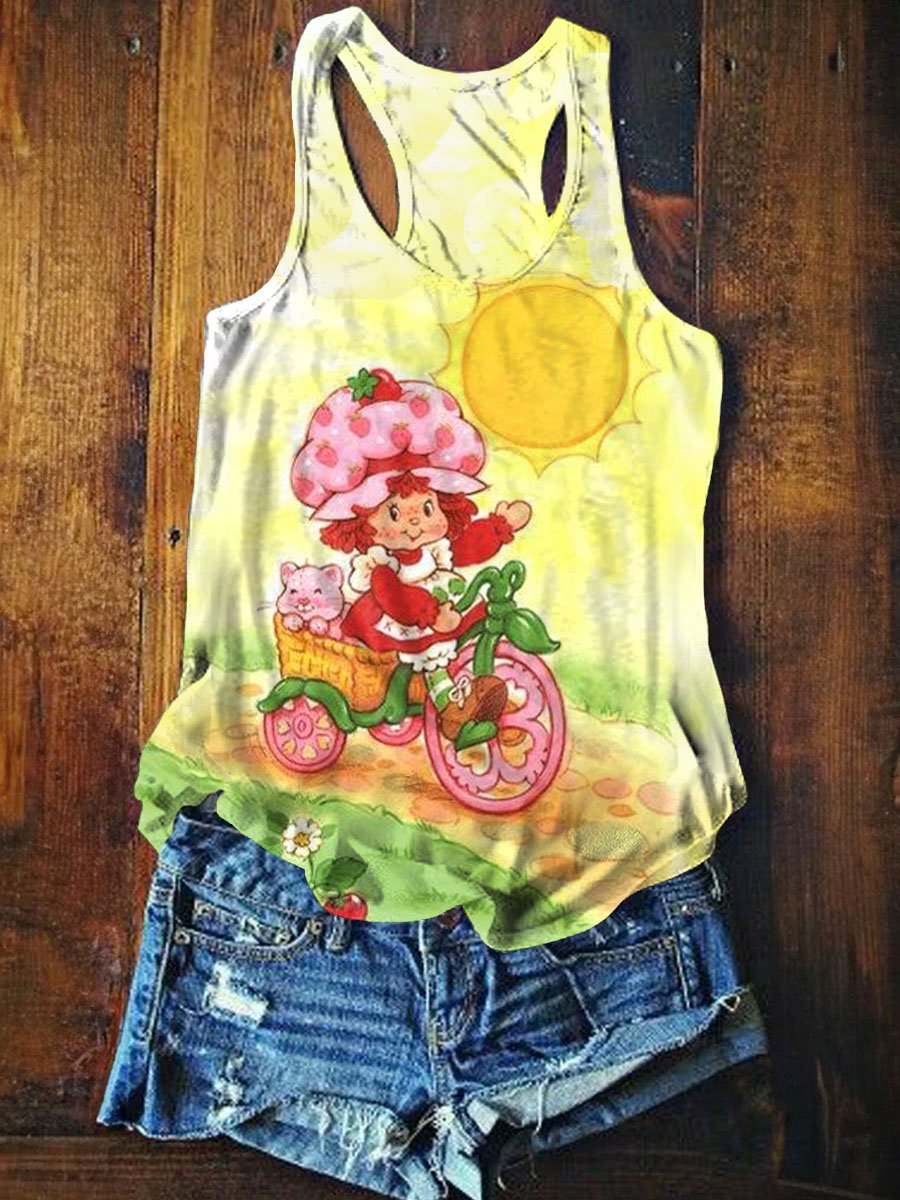 Strawberry Shortcake Print Crew Neck Tank Top