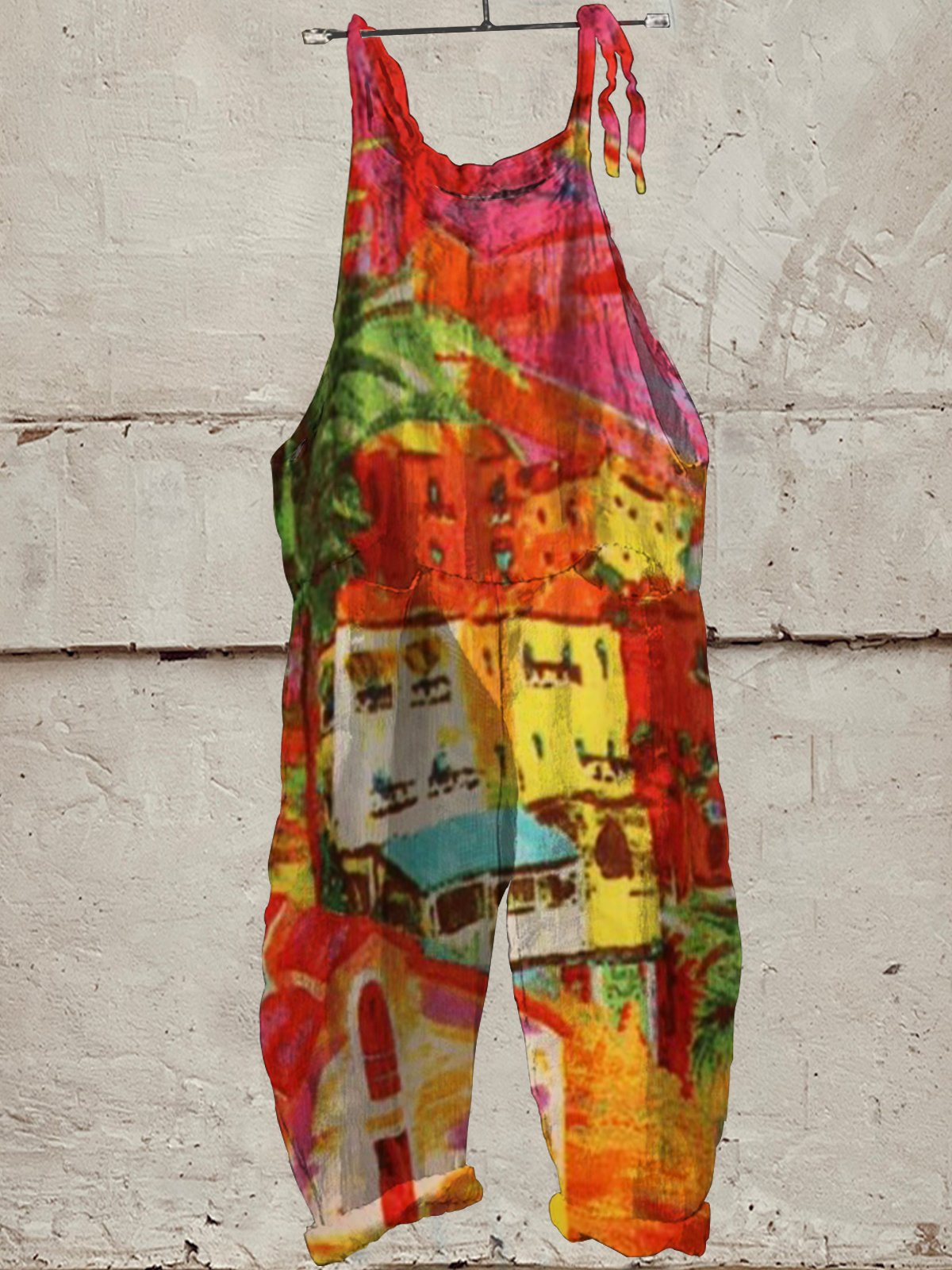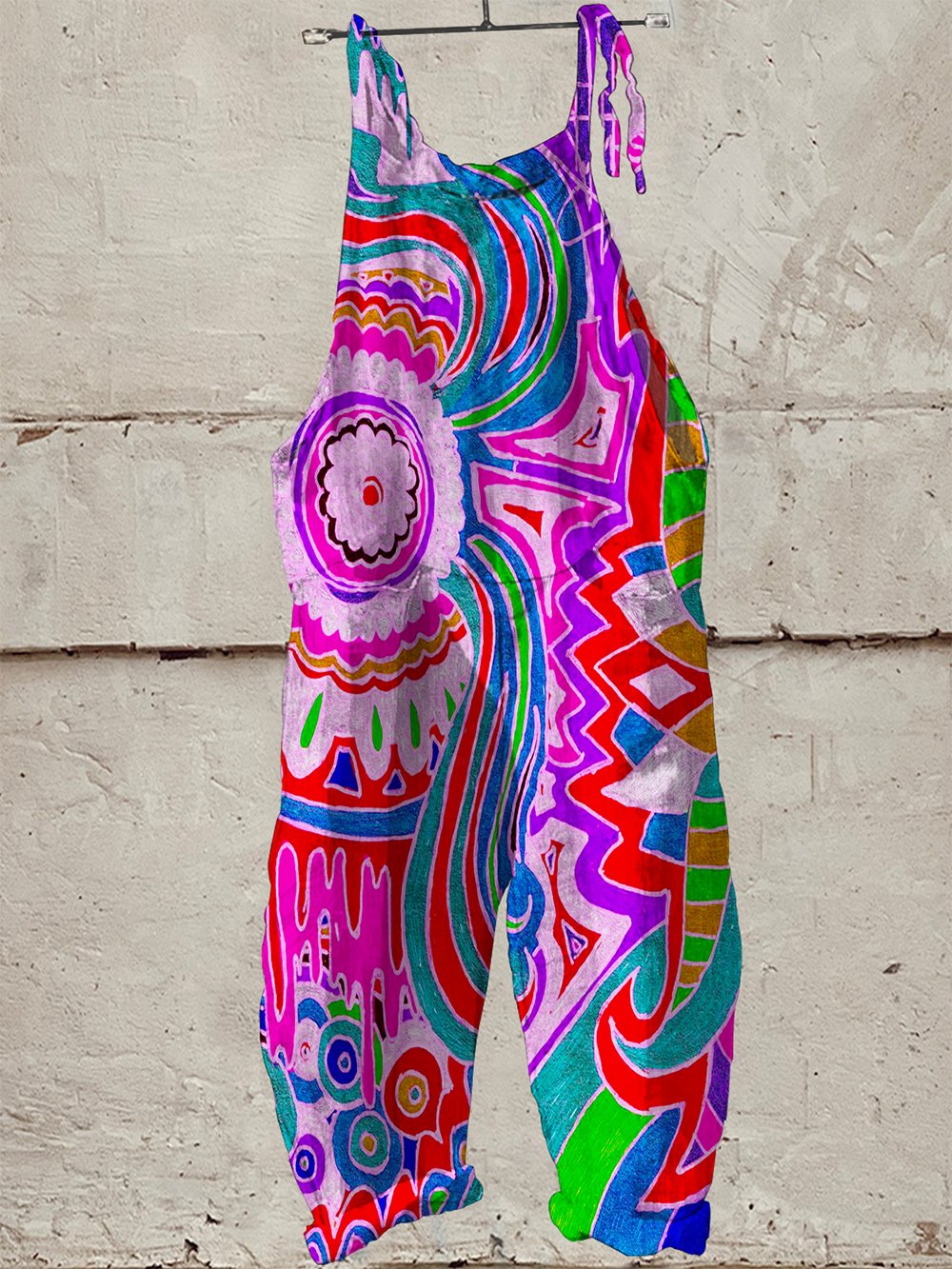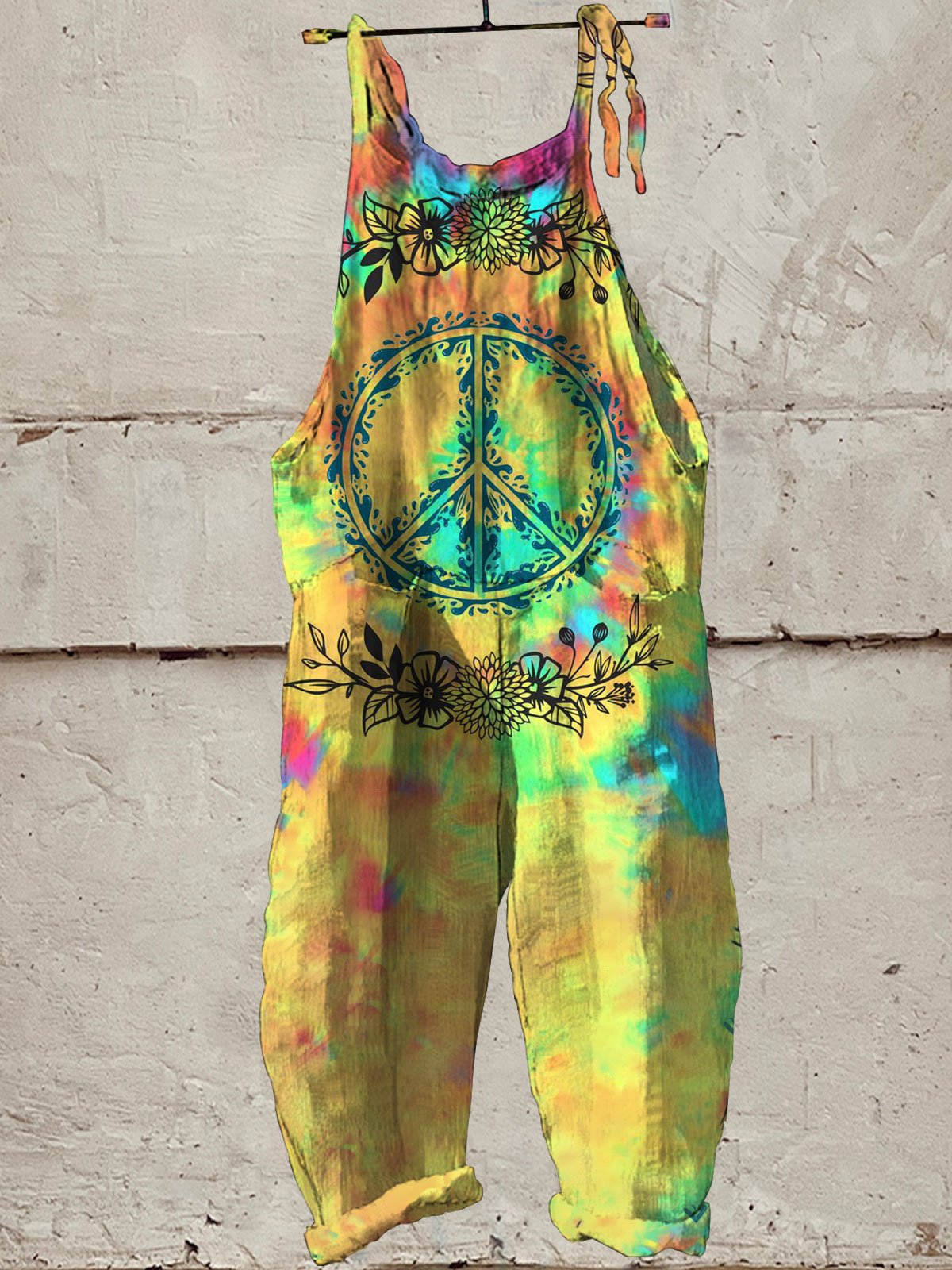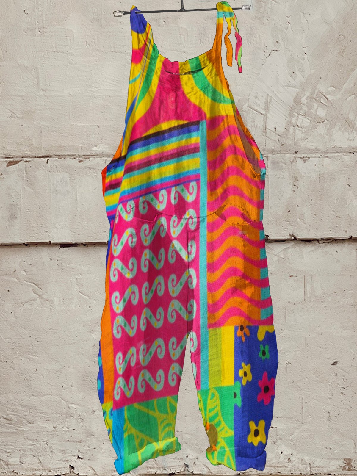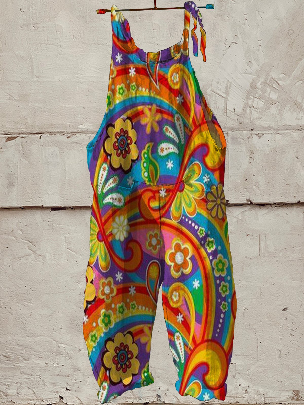 Women's Vintage Hippie Print Casual 100% Cotton Wide Leg Jumpsuit