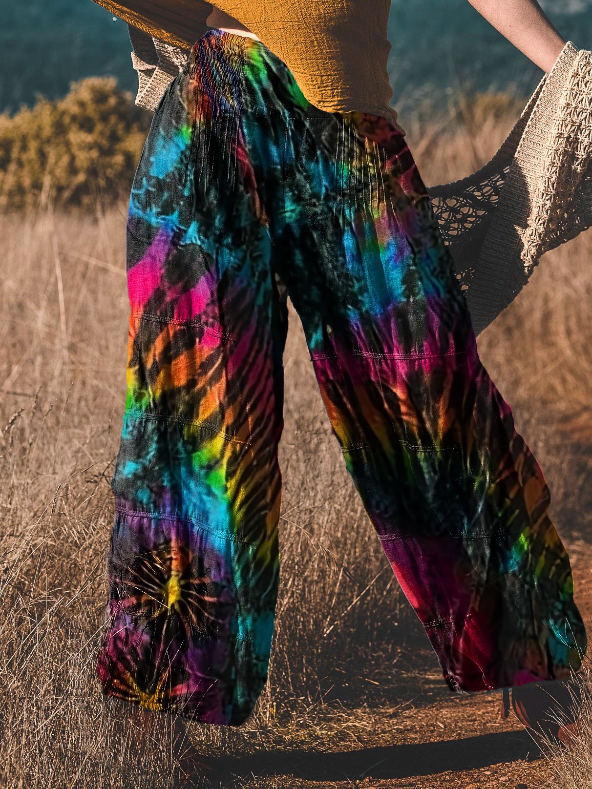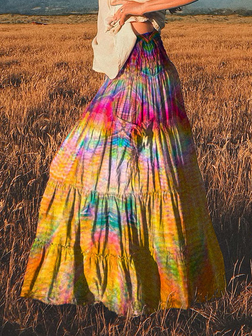 Women's Retro Hippie Tie Dye Print Pants