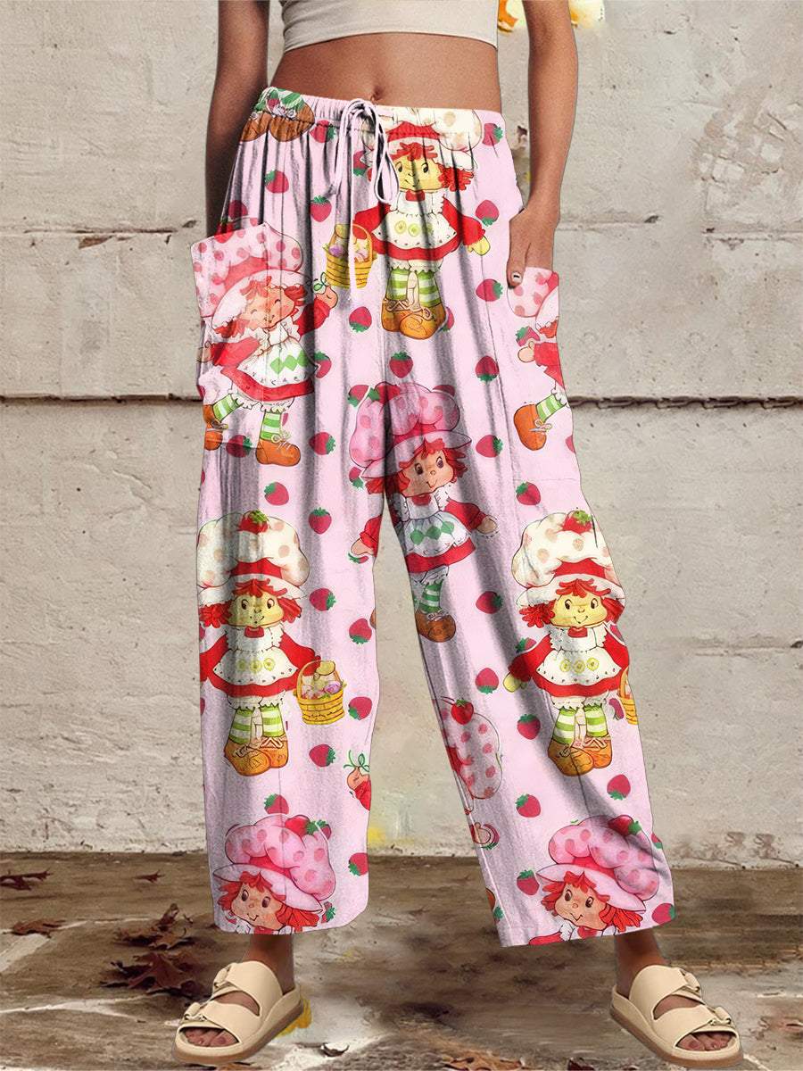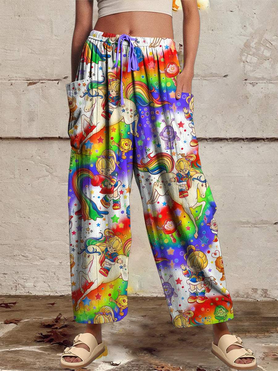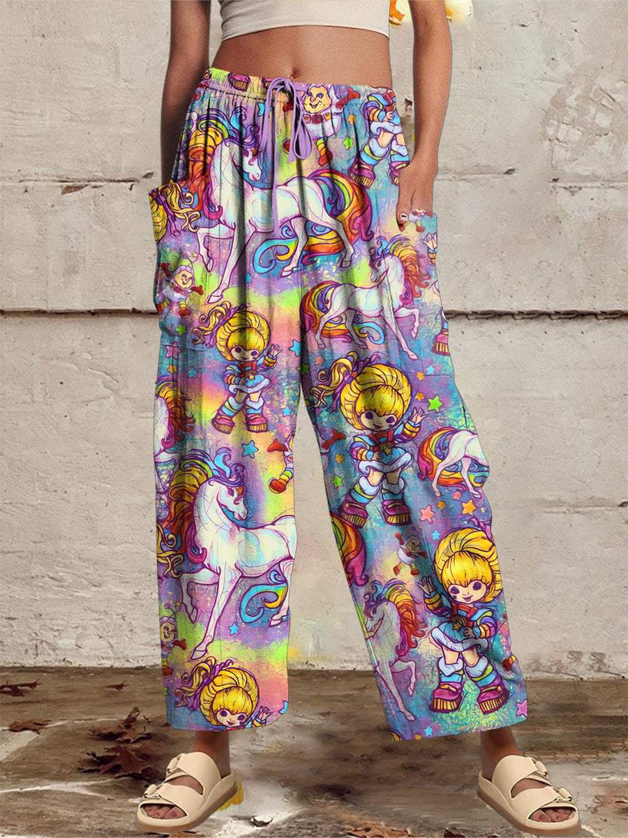 Women‘s Casual 1980s Cartoon Printed Wide Harem Leg Pants