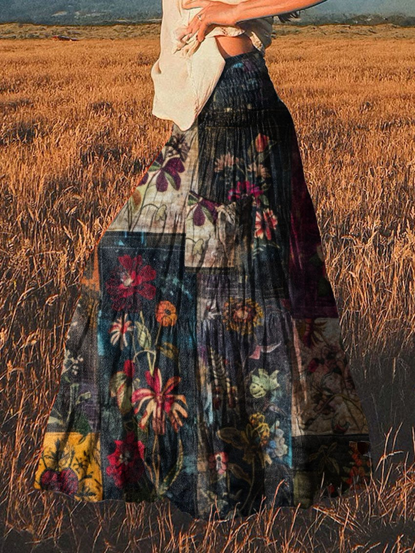 Women's Retro Floral Hippie Print Pocket Skirt