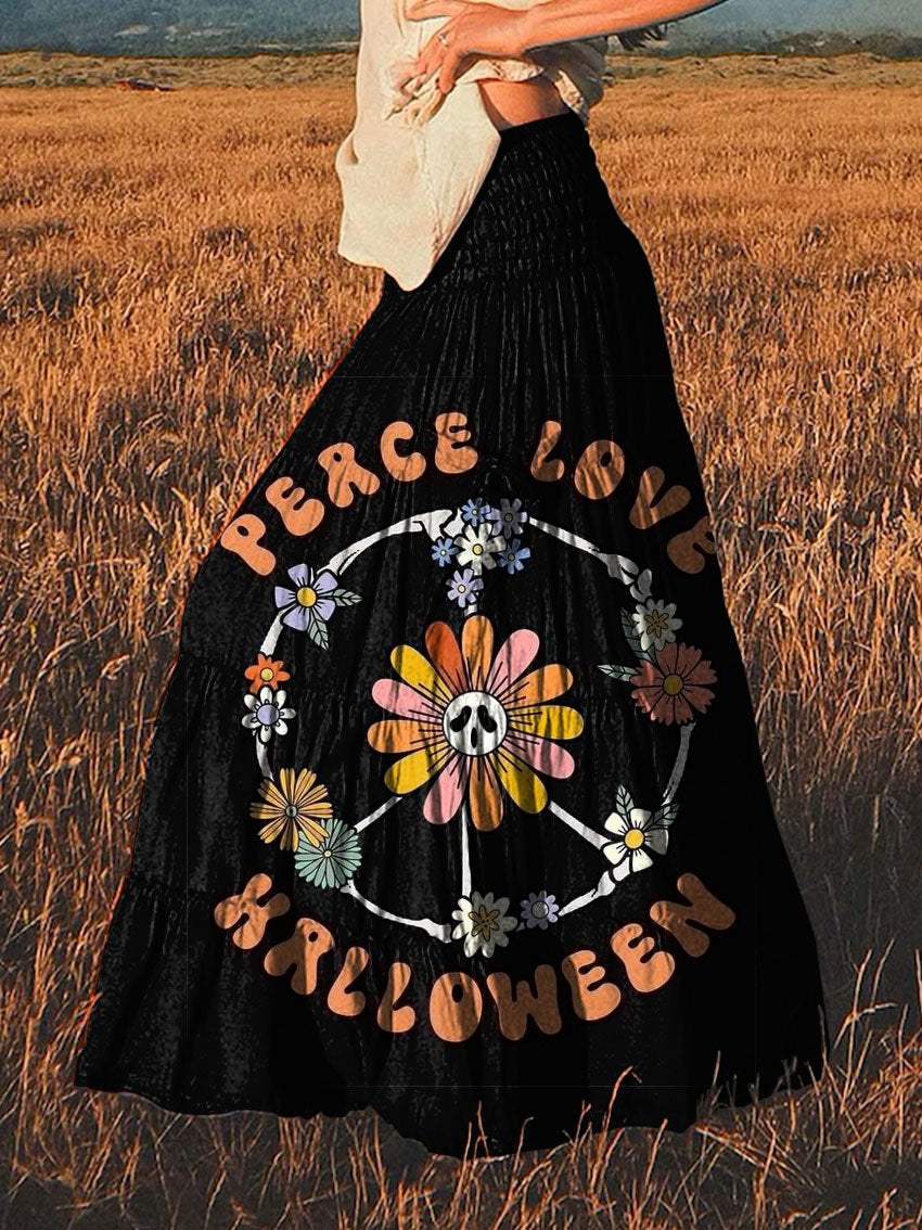 Women's Floral Peace Love Halloween Print Cotton Pocket Skirt