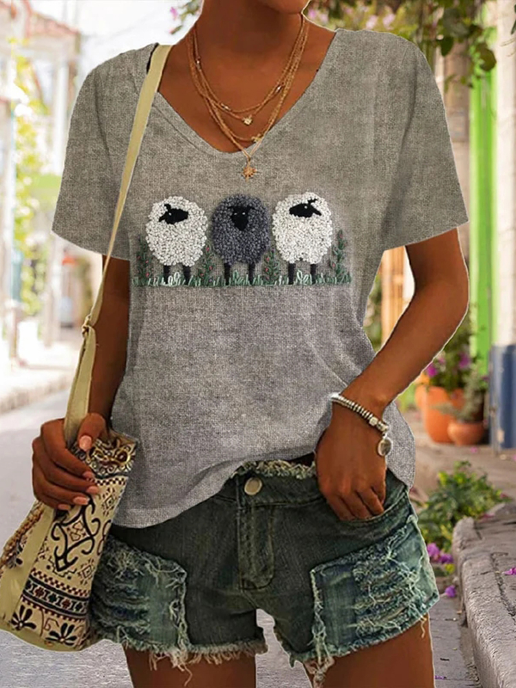 Women's Animal Sheep Comfort Print Comfort Short Sleeve T-Shirt