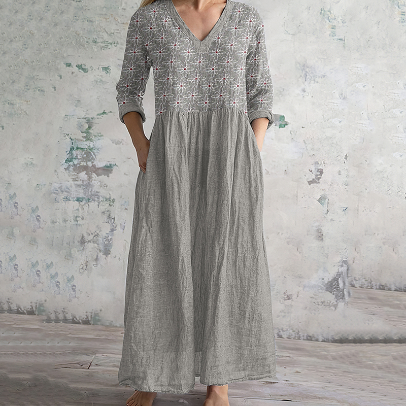 Vintage Floral Ethnic Linen Blend Maxi Dress