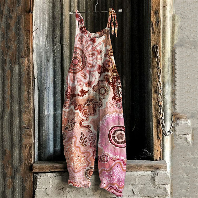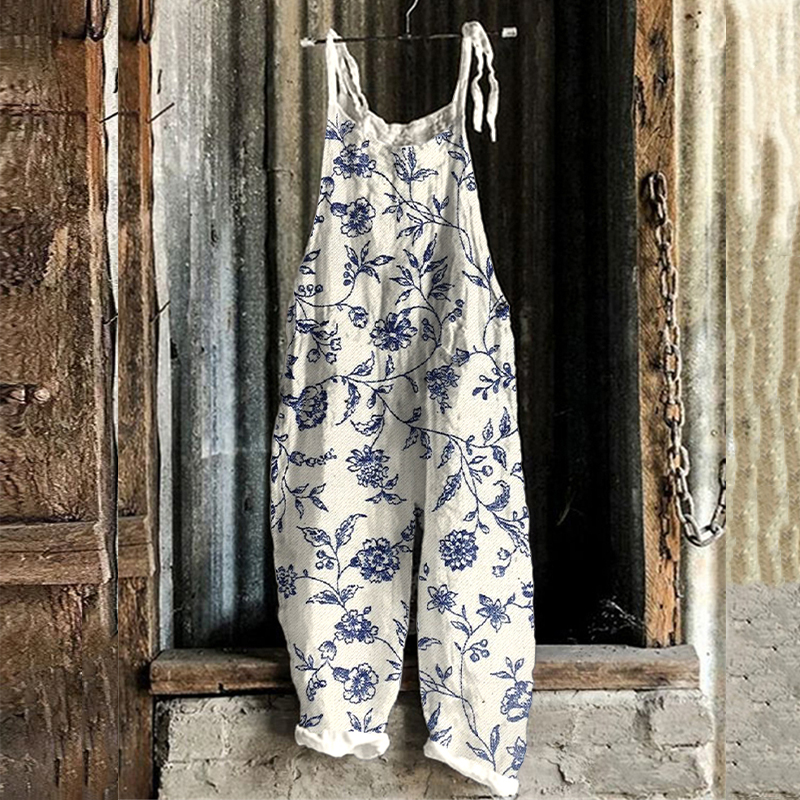 Boho Floral Ethnic Art Linen Blend Jumpsuit