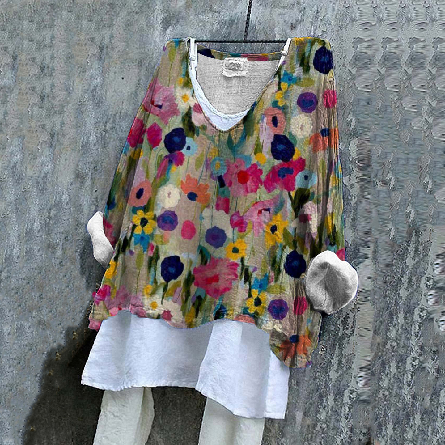 Classy Floral Contrast Color Linen Blend Tunic