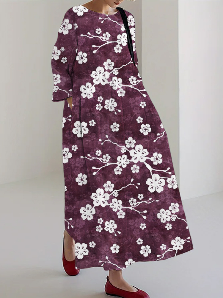 Cherry Blossom Festival Women's Linen Blend Maxi Dress