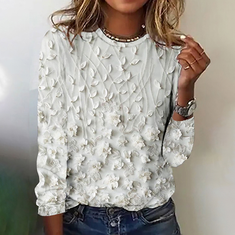 3D Floral Pattern Linen Ladies Long-Sleeved Shirt